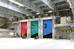 | ■プラットホーム パッカー車で集められたごみは、ごみ投入扉からごみピットに投入します。 |